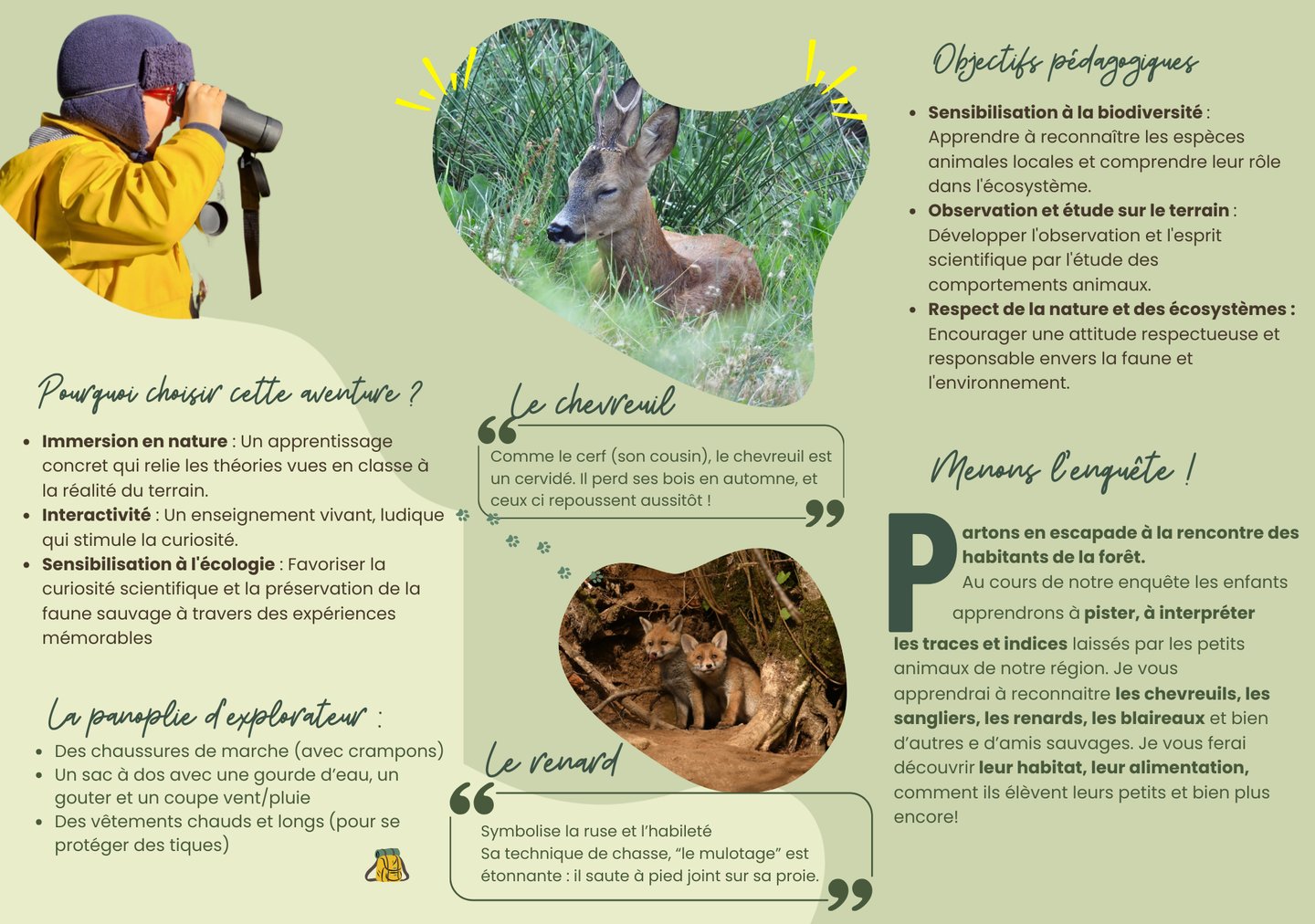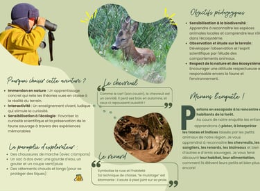Chaque atelier est pensé comme une aventure éducative : les enfants apprennent en marchant, en observant, en jouant, et en ressentant.